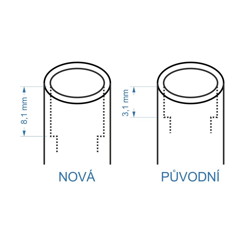 U zbraní staršího data výroby je nutné ověřit délku vodicí drážky krycího pláště hlavně. Tento adaptér vyžaduje drážku o hloubce 8,1 mm. Starší modely mohou mít krytku s drážkou pouze 3,1 mm, na které tento adaptér nelze korektně instalovat.