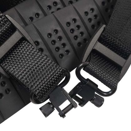 Oba popruhy mají rychlé nastavení délky pro utažení pušky na zádech - mužete také použít poutka na suchý zip pro zajištení volných koncu popruhu.