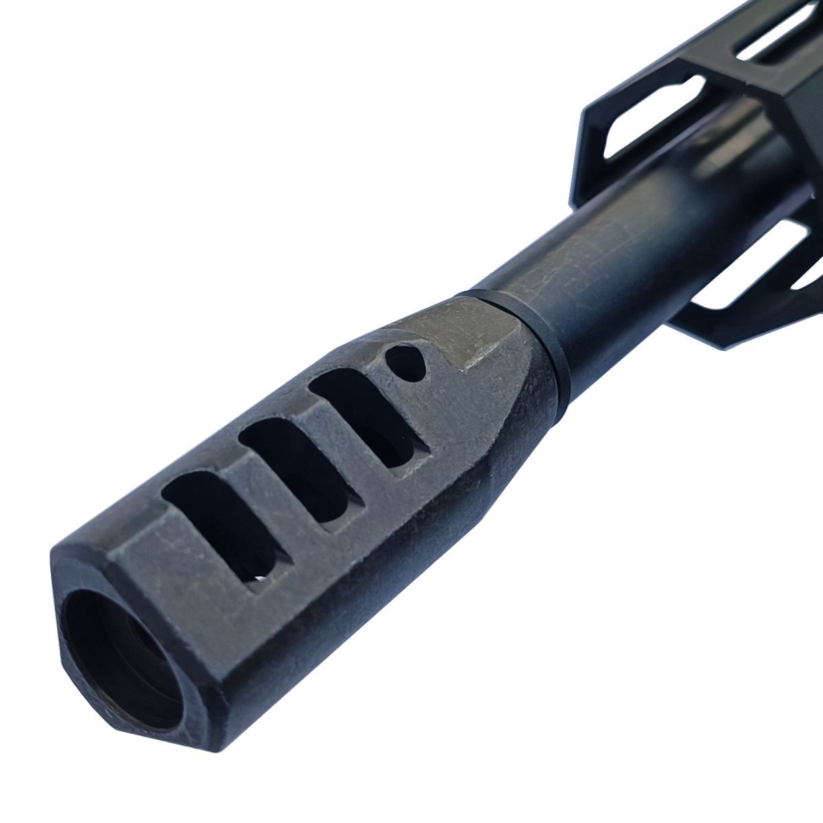 Na závitu ústí hlavne 1/2"x28 UNEF je nainstalován kompenzátor ADC Plus a plynovratným mechanismem délky "Mid".