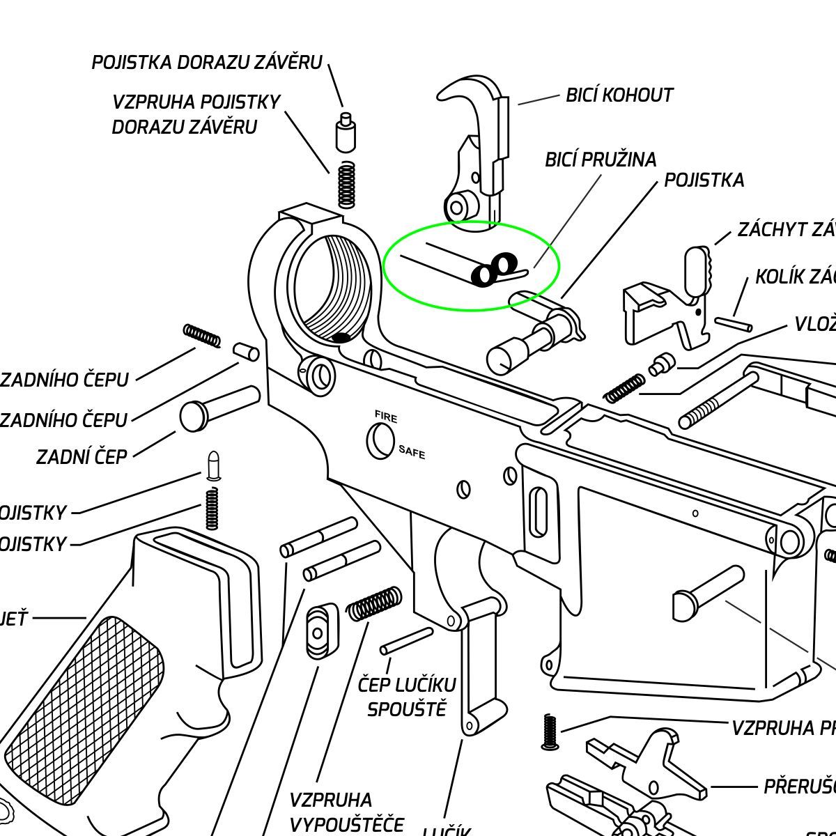 Náhradní bicí pružina ECI pro pušky platformy AR-15.