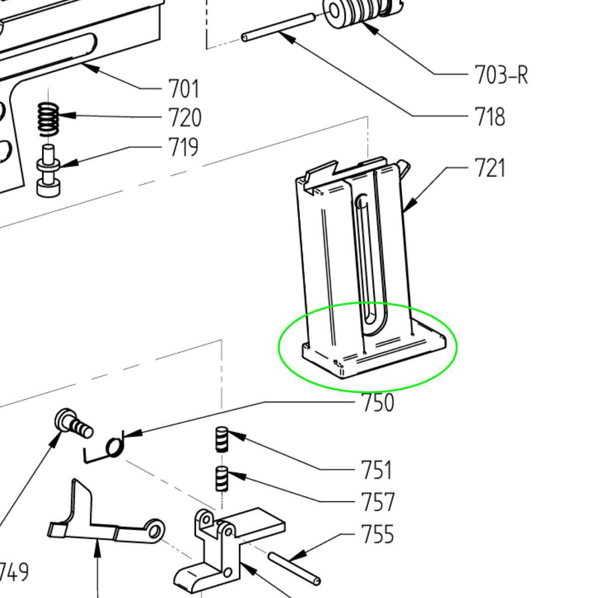 Originální náhradní botka (dno) zásobníku z produkce prestižní italské zbrojovky Pardini Armi. Tento díl je určen pro standardní rovné zásobníky s kapacitou 5 nábojů pro sportovní pistole řady Pardini SP a SP Rapid Fire v ráži .22 Long Rifle.