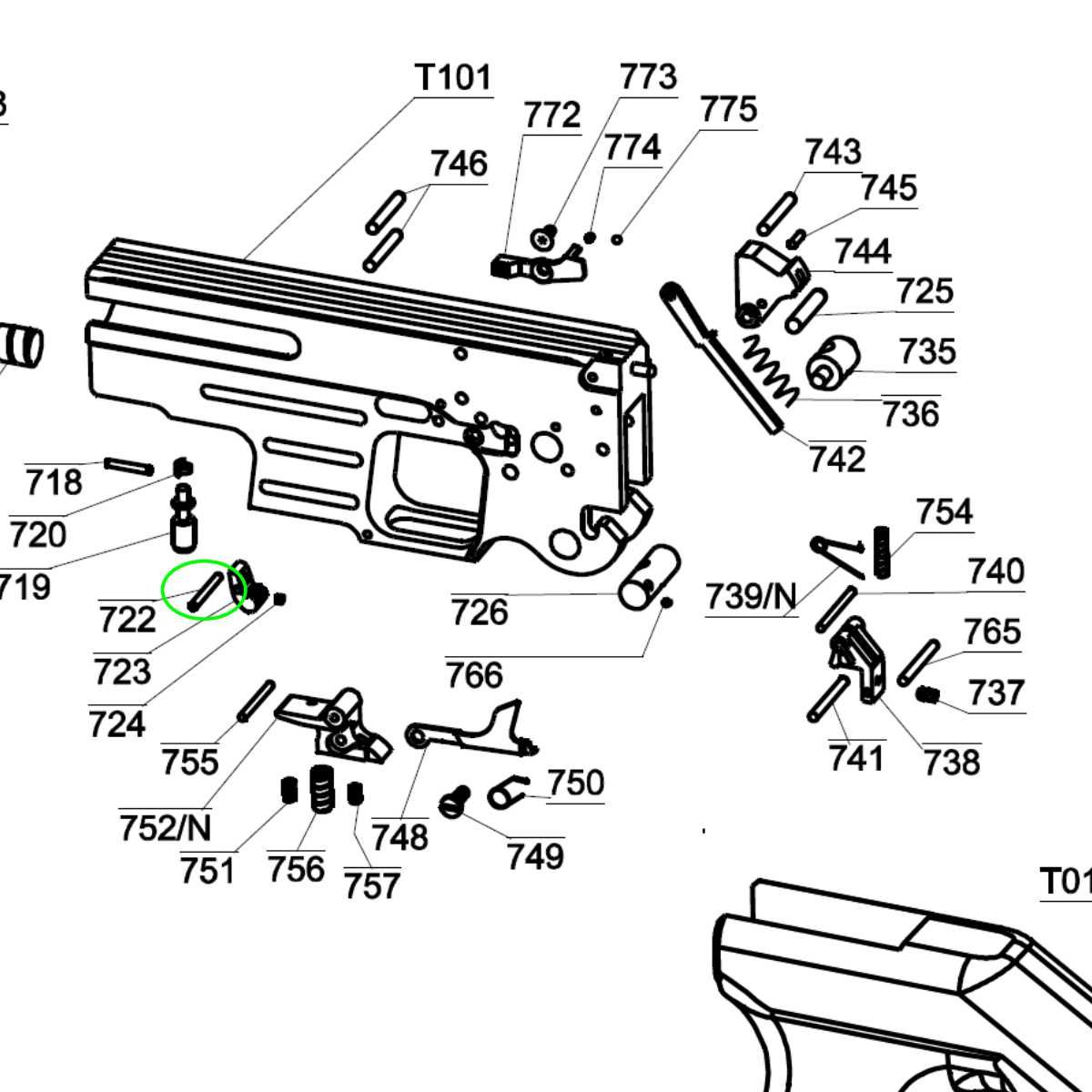 Jedná se o díl c. 722 (MAGAZINE CATCH LOCKING PIN) dle rozkresu Pardini SP a TR20.