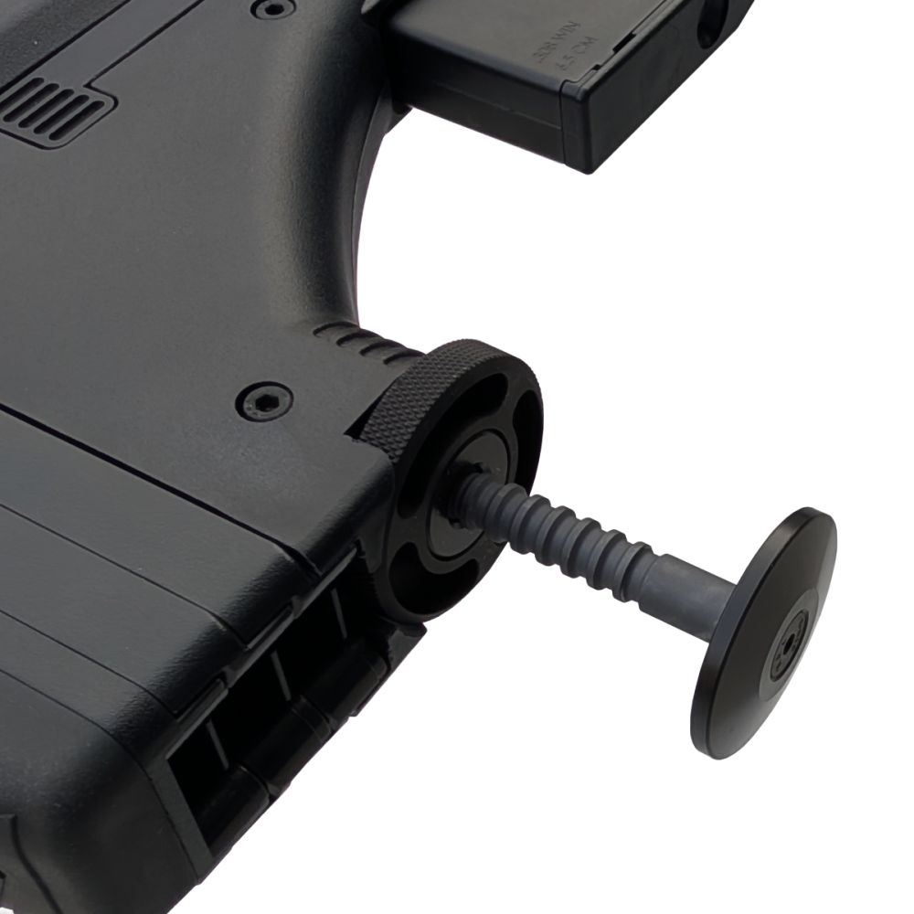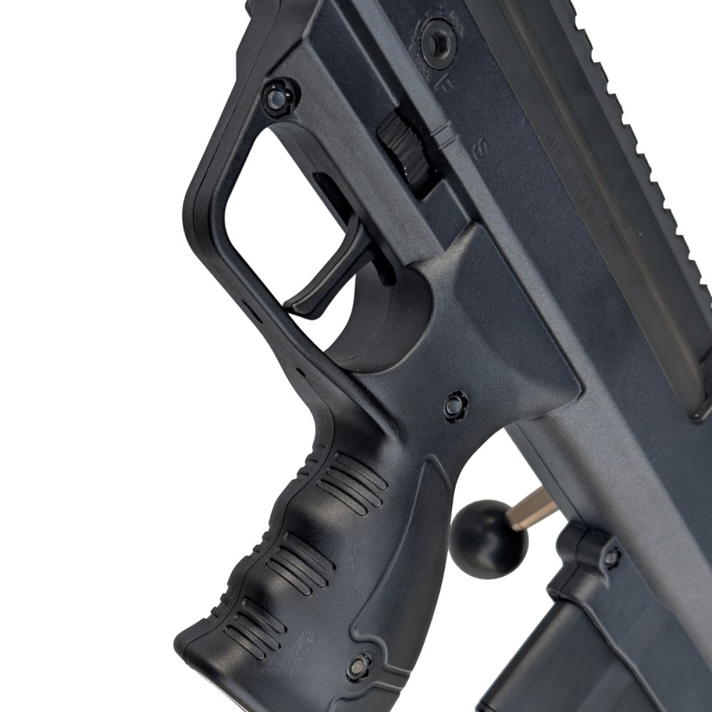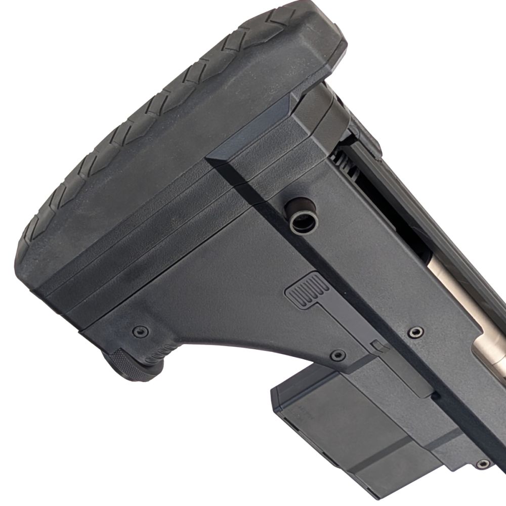 Zbraň vyniká dokonalou ergonomií s těžištěm posunutým dozadu, stavitelnou lícnicí a integrovanou "třetí nohou" (monopodem) v pažbě.