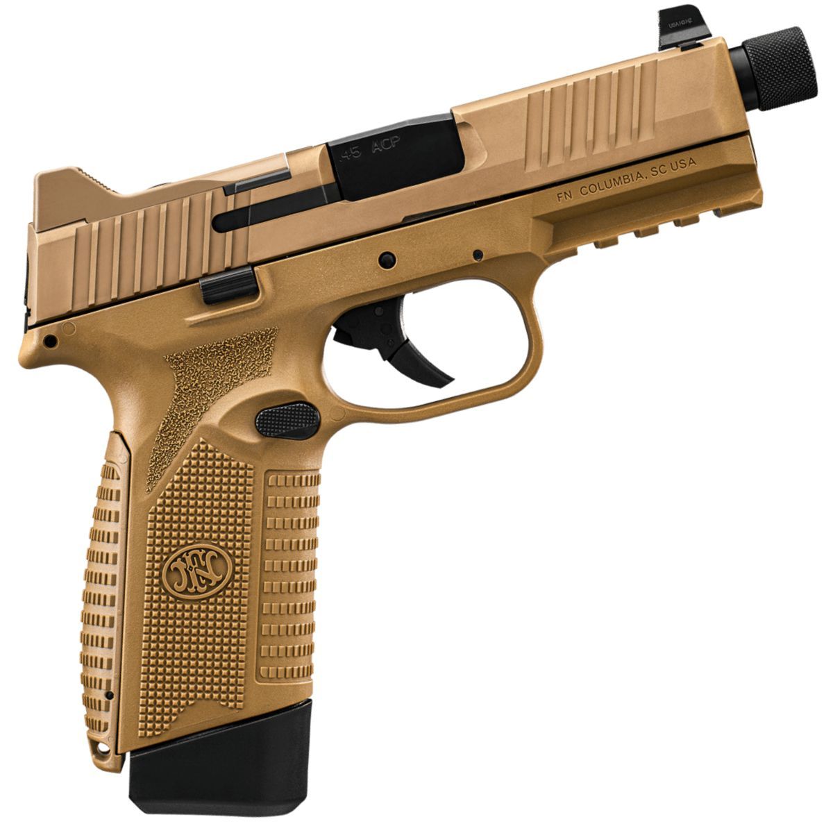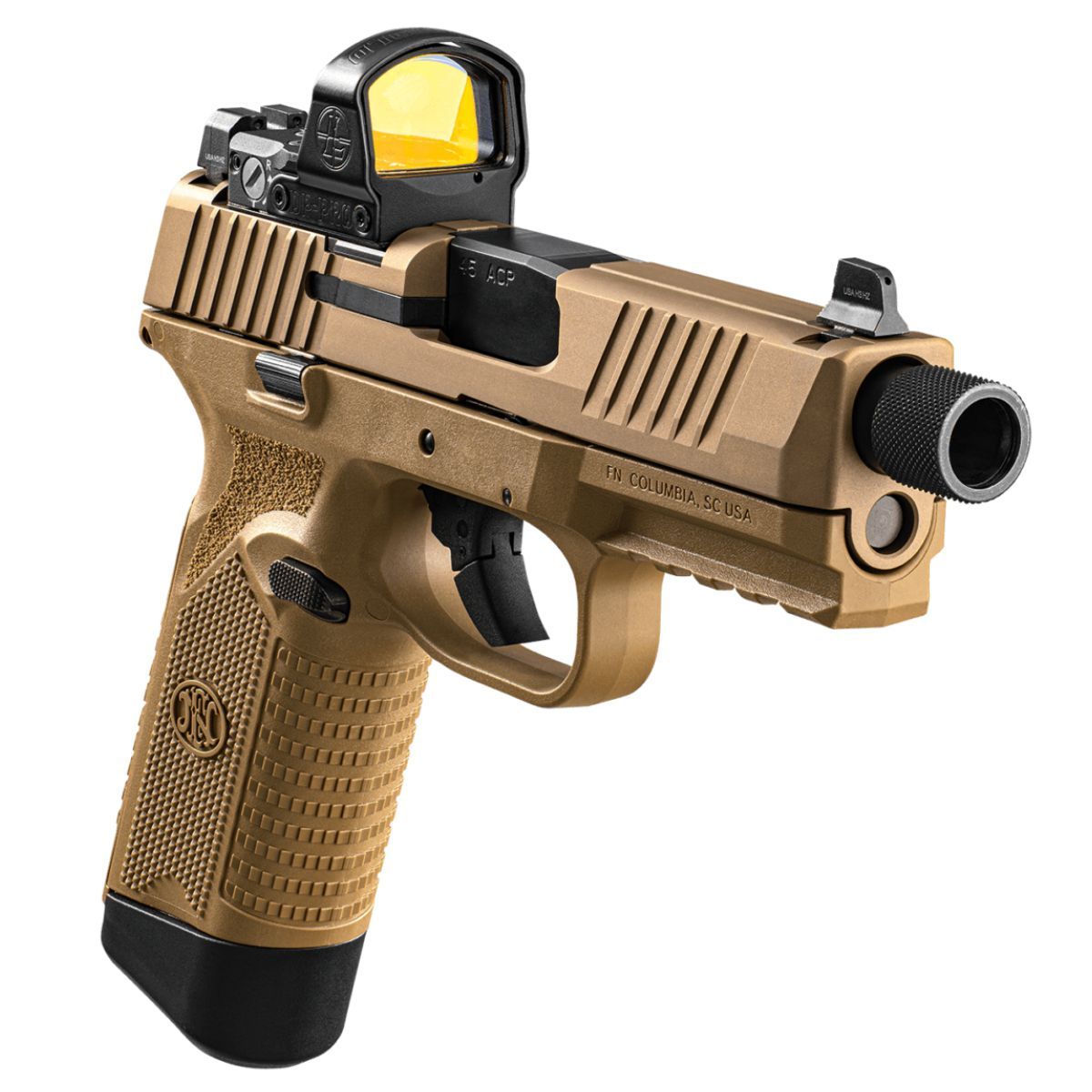 Pistole pripravená na použití tlumice hluku výstrelu, se závitem na hlavni a tritiovými míridly s funkcí co-witness je vylepšena osvedcenou ergonomií pistole FN 509® Tactical.