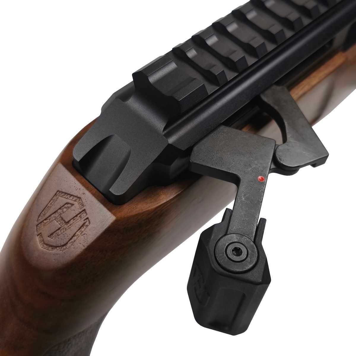 Přímotažný závěr pušky Force B1 pracuje s kloubovým, výkyvným mechanismem, zajišťujícím velmi rychlé přebití a vysoce pevné uzamčení pro zaručení maximální přesnosti.