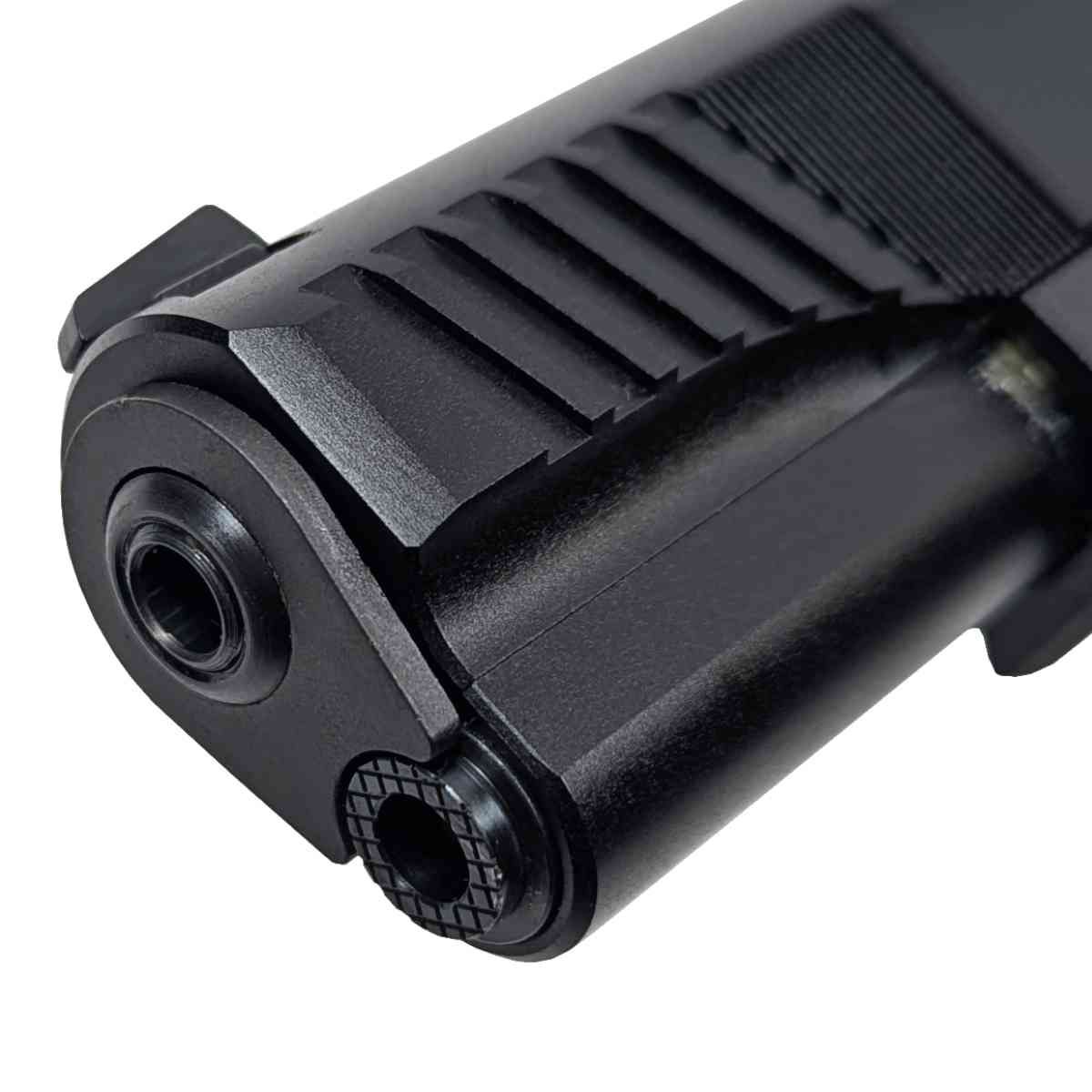 Zbraň je osazena zvetšeným bobřím ocasem a klasickým hmatníkem dlaňové pojistky, pryžovými střenkami, prodlouženým záchytem zásobníku a dalšími vychytávkami, které mají pozitivní vliv pro obsluhu zbraně.