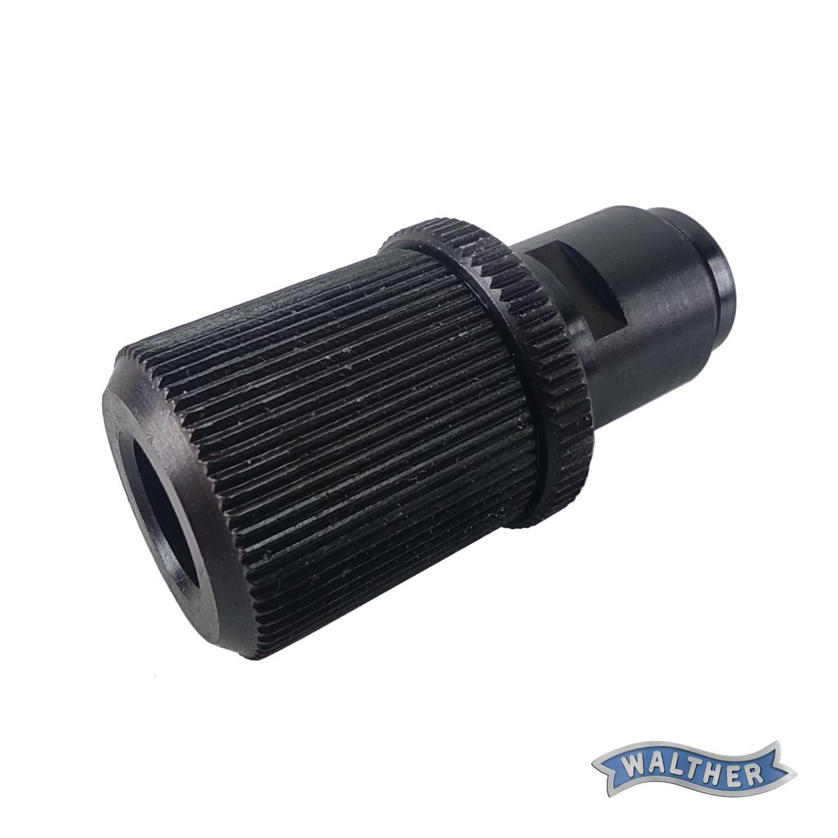 Adaptér umožňující instalaci úsťových zařízení na malorážkové pistole z produkce Carl Walther, Umarex a Hämmerli.