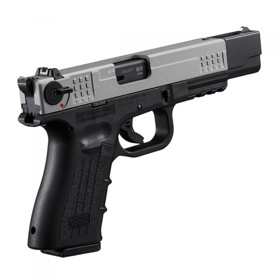 Model M22 Target od rakouského výrobce ISSC Austria je speciálně navržen pro přesnější rekreační střelbu. Od základních modelů se liší prodlouženou hlavní a závěrem o délce 139 mm, což zbrani dodává delší záměrnou a lepší stabilitu při mířené střelbě na terč. Ergonomií a ovládacími prvky přitom zůstává věrný osvědčené koncepci podobné pistolím Glock.