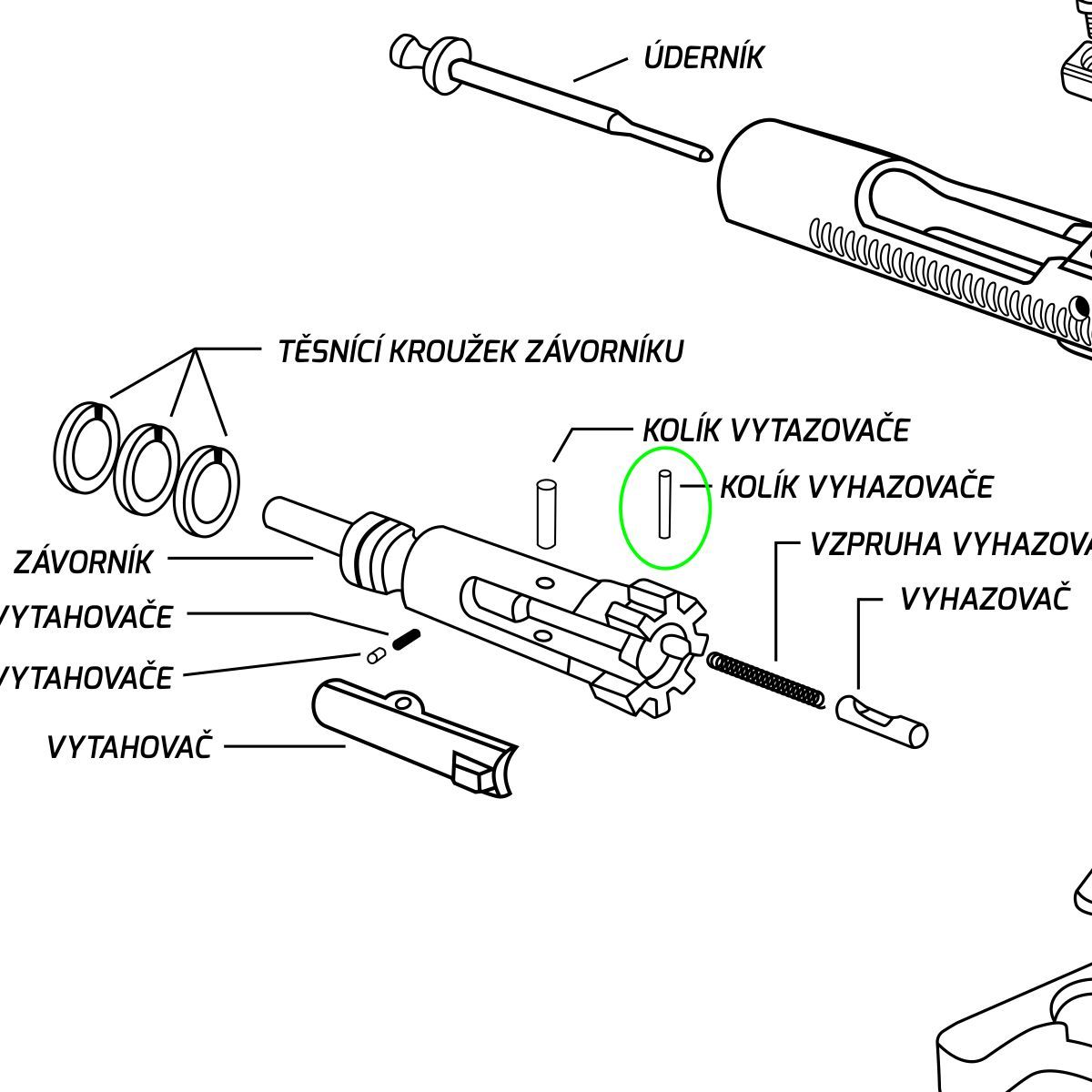 Náhradní kolík pro vytahovač pro pušky AR-15.