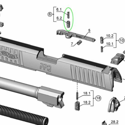 Jedná se o díl c. 6 (Extractor plunger assembly) dle rozkresu Walther P99, PPQ, Q4 a Q5.