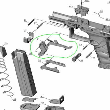 Jedná se o díl c. 24 (Abzug kpl. / Trigger assembly) dle rozkresu pro pistoli Walther PPQ M1.