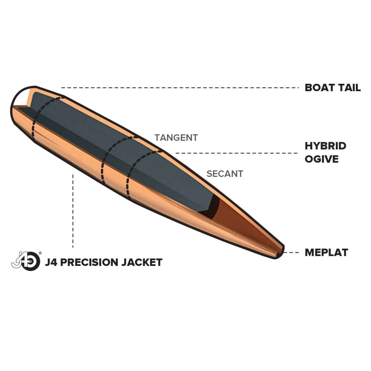 Jedná se o optimalizovanou hybridní konstrukci, která má na svou hmotnost a ráži velmi vysoký balistický koeficient.
