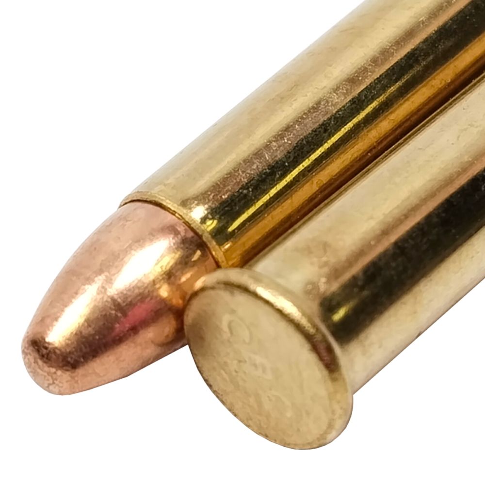 Celoplášťová střela. Úsťová rychlost 582 m/s a energie 439 J.
