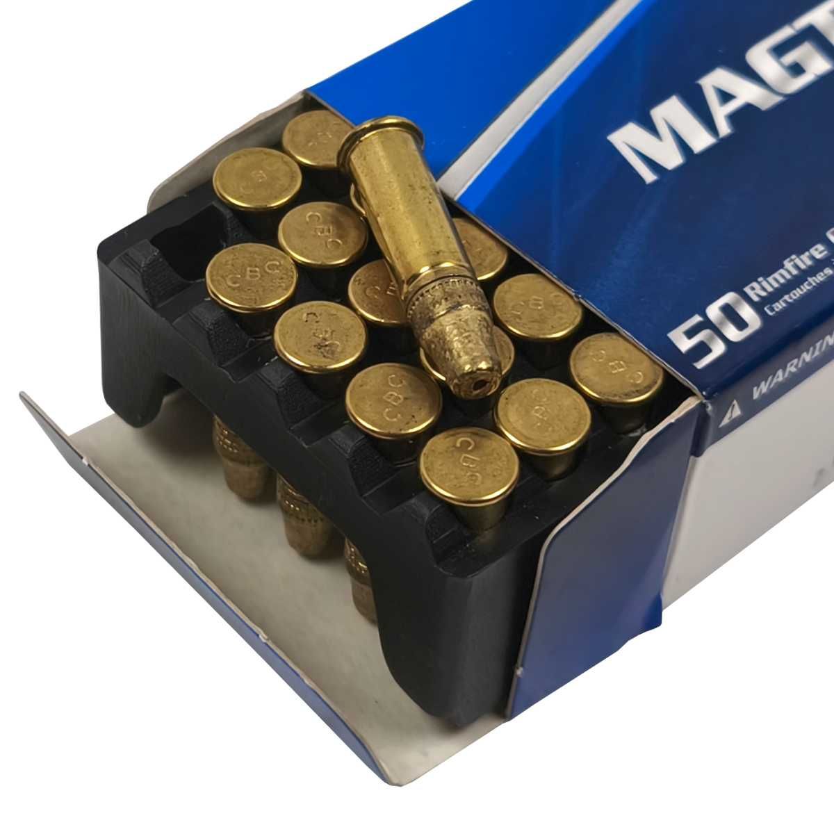 Ústová rychlost náboju Magtech 22LR (22E) je 455 m/s a ústová energie 222 J.