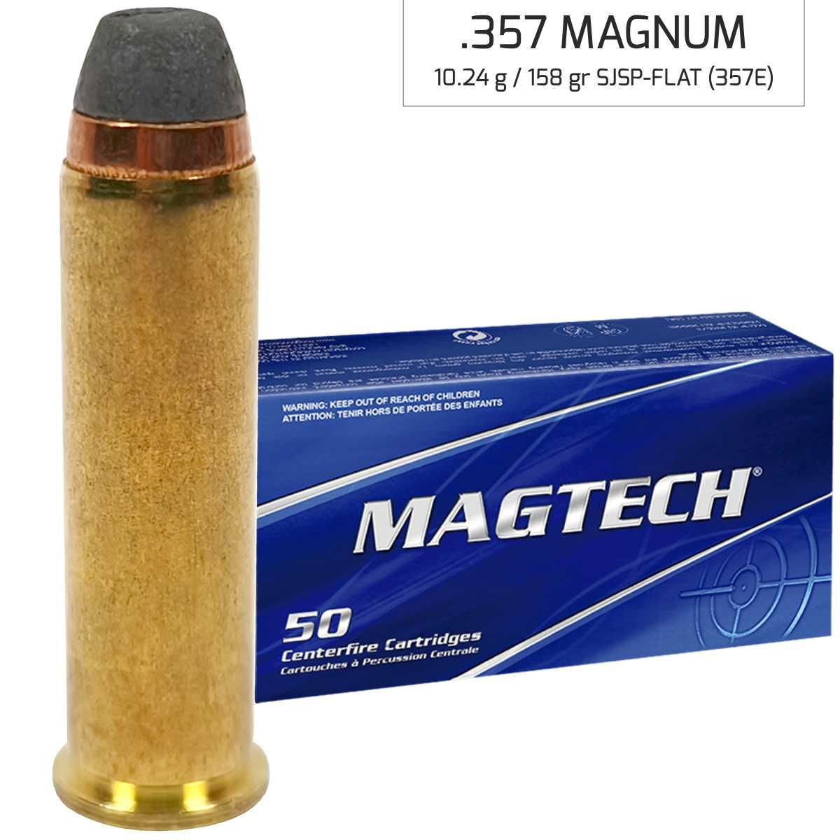Revolverové náboje Magtech 357 Magnum s polopláštovou strelou SJSP (Semi-Jacketed Soft Point) o hmotnosti 10,24 g / 158 gr nabízejí strelcum vysoce výkonné náboje s rízenou expanzí pro sebeobranu a cvicnou strelbu.