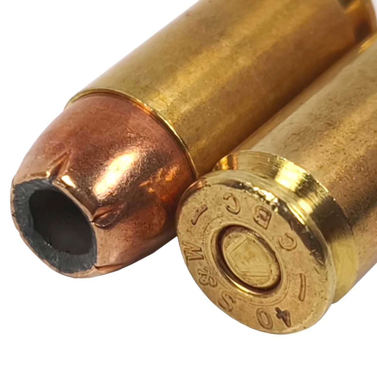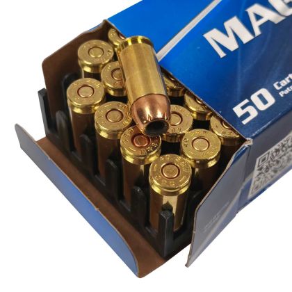 Pistolové / revolverové náboje Magtech 40 S&W s celopláštovou strelou s dutinkou JHP (Jacketed Hollow Point) o hmotnosti 11,66 gramu / 180 grainu.