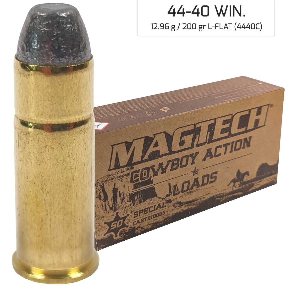 Revolverové a puškové náboje Magtech 44-40 Win. s olovenou strelou s plochou špickou LFN L-FLAT (Lead Round Nose Flat) o hmotnosti 12,96 g / 200 gr nabízejí strelcum vysoce výkonné náboje pro cvicnou strelbu na terc.