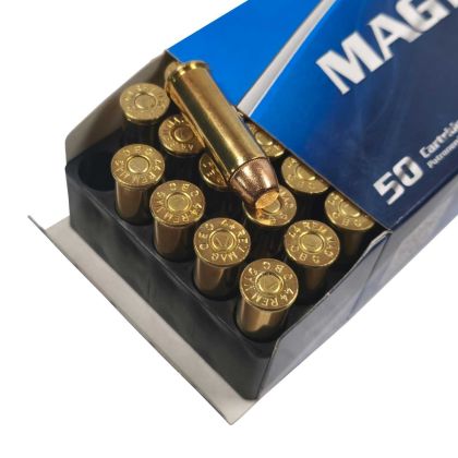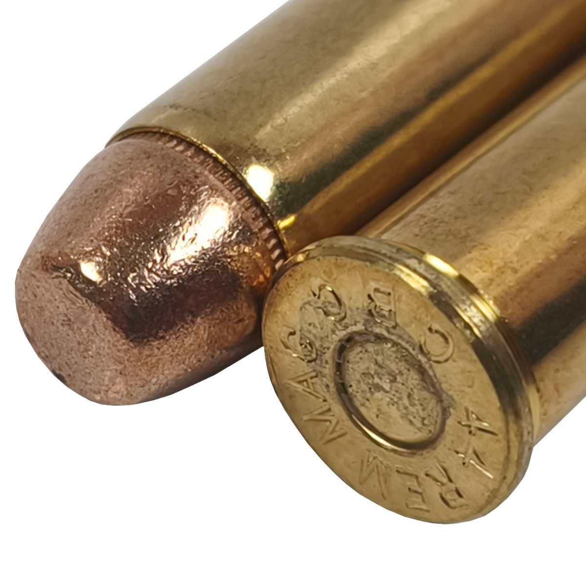 Revolverové náboje Magtech 44 REM MAG s celopláštovou strelou s plochou špickou FMJ-FLAT (Full Metal Jacket) o hmotnosti 15,55 g / 240 gr nabízejí strelcum vysoce výkonné náboje s rízenou expanzí pro sebeobranu a cvicnou strelbu.