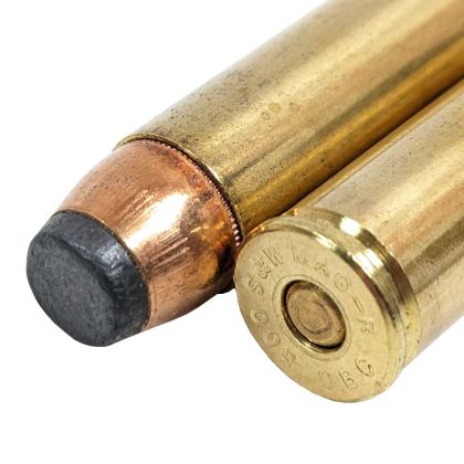 Revolverové náboje Magtech 500 S&W Mag s polopláštovou strelou s s komolým kuželem SJSP FLAT (Semi-Jacketed Soft Point) o hmotnosti 25,92 g / 400 gr nabízejí strelcum vysoce výkonné náboje pro cvicnou strelbu na terc.