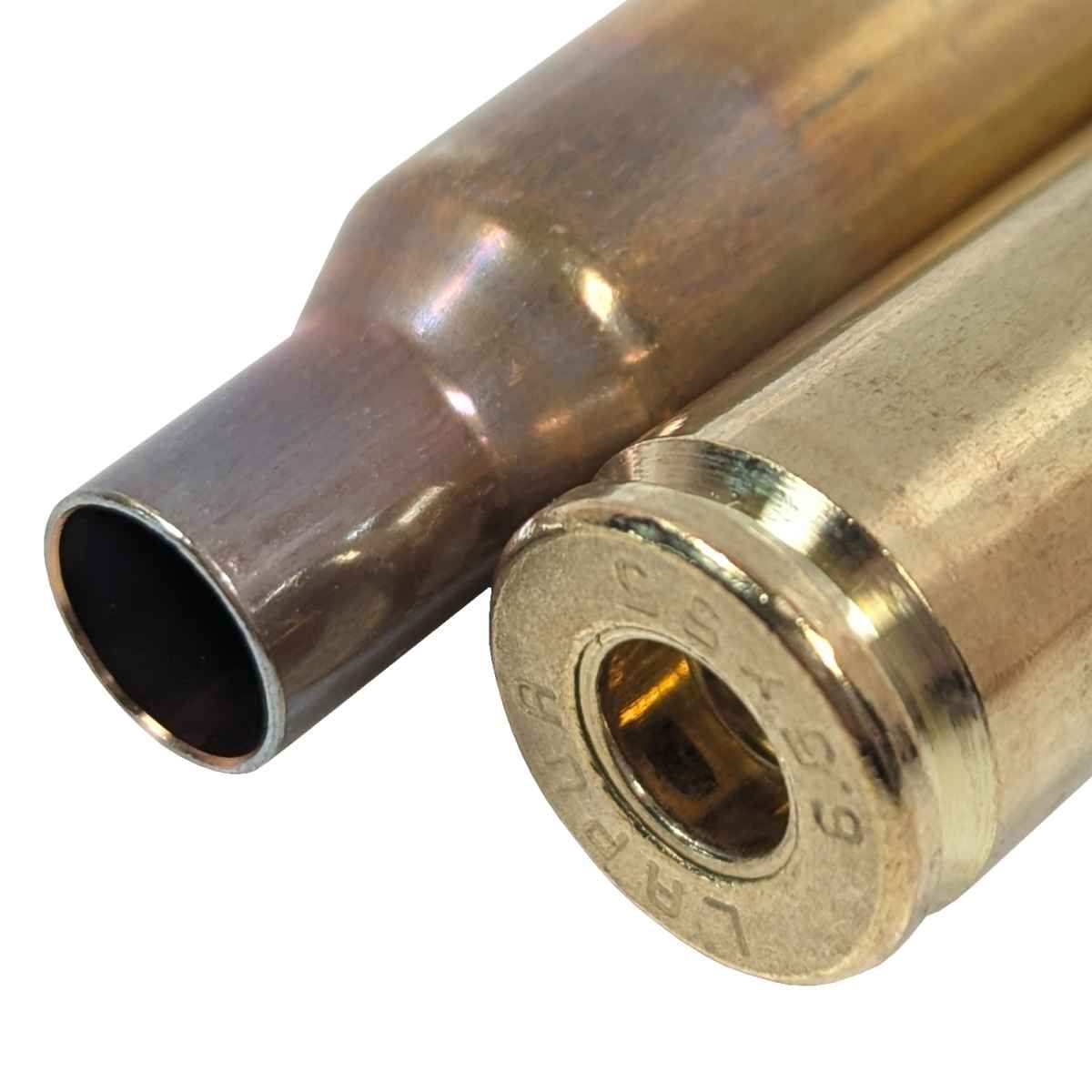 Žíhané stěny krku nábojnice Lapua si udržují stálou tloušťku a zajišťují si vysokou odolnost pro opakovaný proces přebíjení.