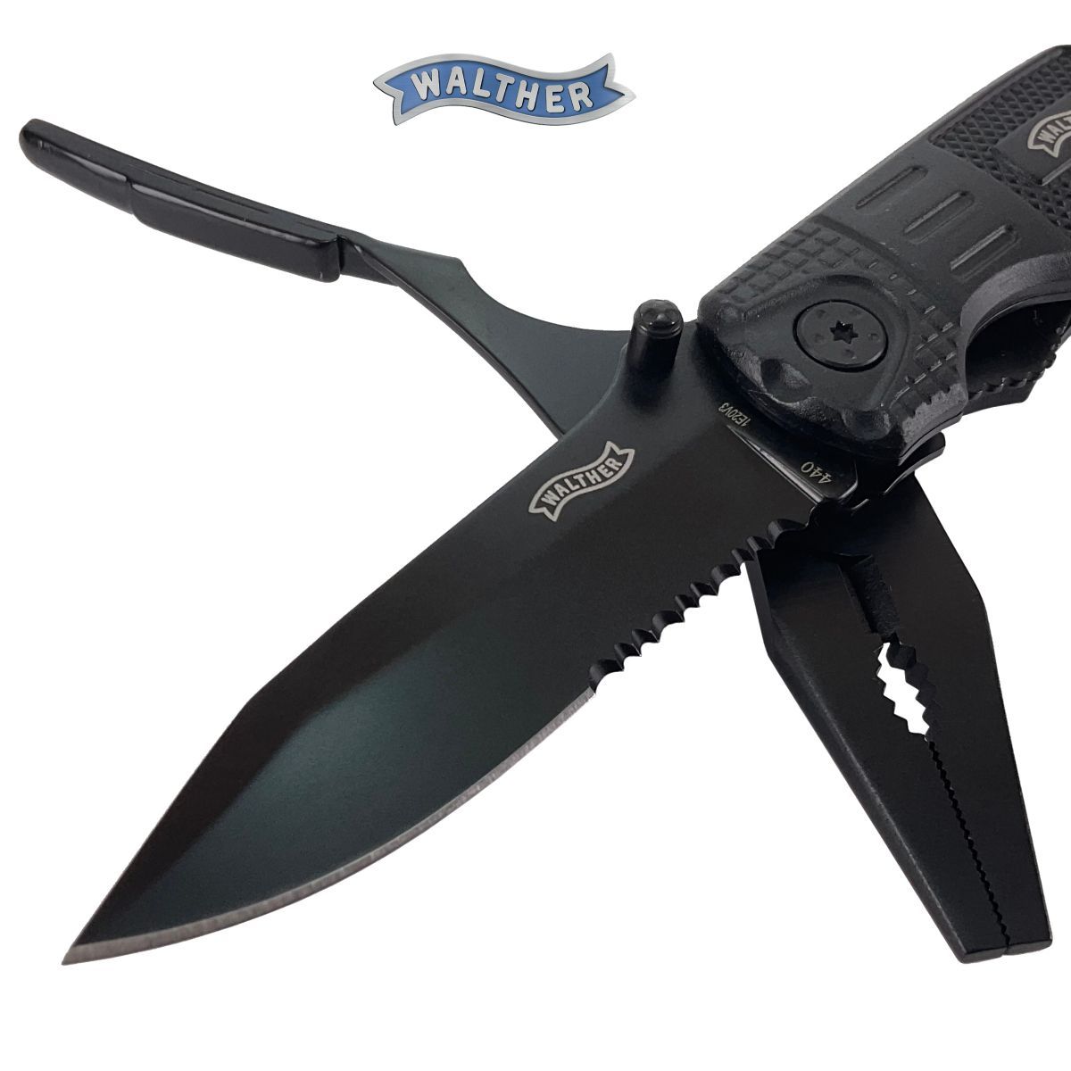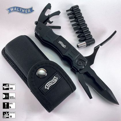 Walther Multi Tack je fascinující kombinací kapesního nože a plnohodnotného multitoolu. Je až neuvěřitelné, kolik praktických nástrojů se schovává v tomto kompaktním těle. Základem je čepel typu Spear Point s kombinovaným ostřím, vyrobená z nerezové oceli 440A, která je bezpečně zajištěna osvědčenou pojistkou Liner-Lock.