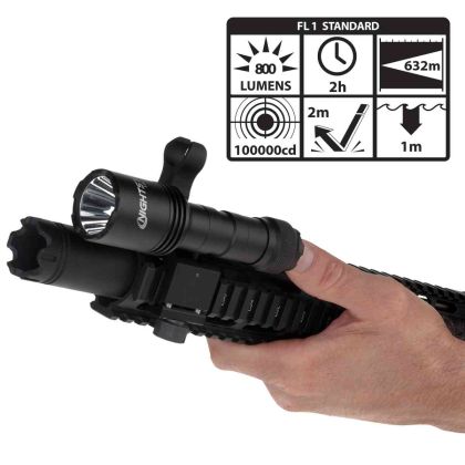 Tato kompaktní taktická svítilna je určena pro pušky, karabiny nebo brokovnice. Instaluje se na Picatinny lištu (MIL-STD-1913) pomocí jedné ze dvou přiložených montáží: klasické reverzibilní s palcovým šroubem, nebo 45° úhlové montáže pro co nejnižší profil zbraně.
