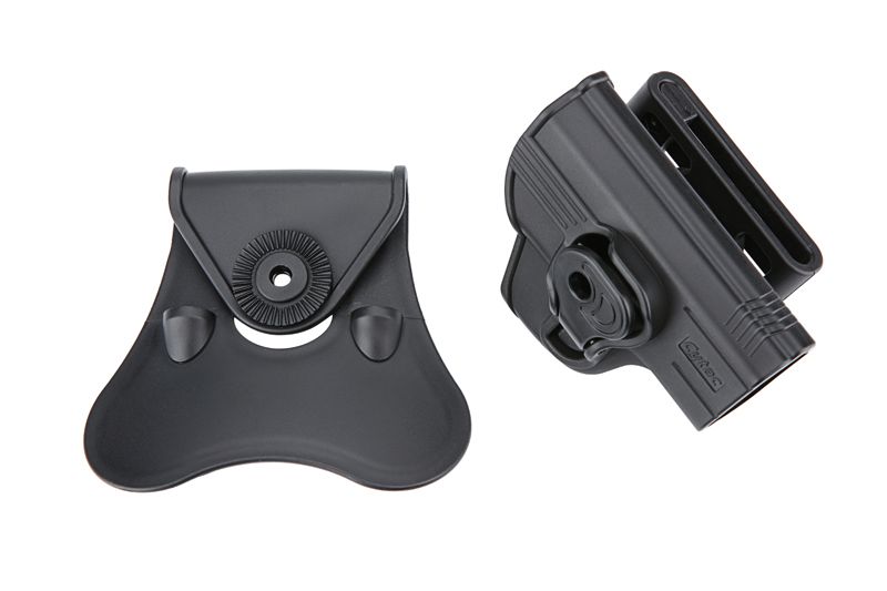 Pouzdro je opatreno automatickou ukazovákovou pojistkou zajištující rychlé vytažení a soucasne automatické zajištení zbrane po vložení zpet do pouzdra.