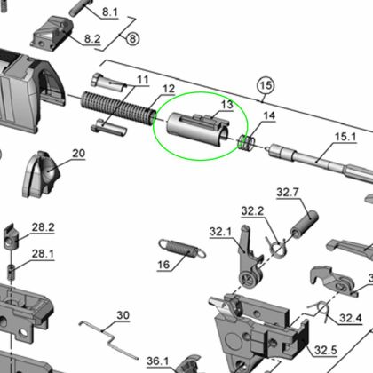 Jedná se o díl c. 13 (Striker guide) dle rozkresu Walther PPQ M1 a M2.