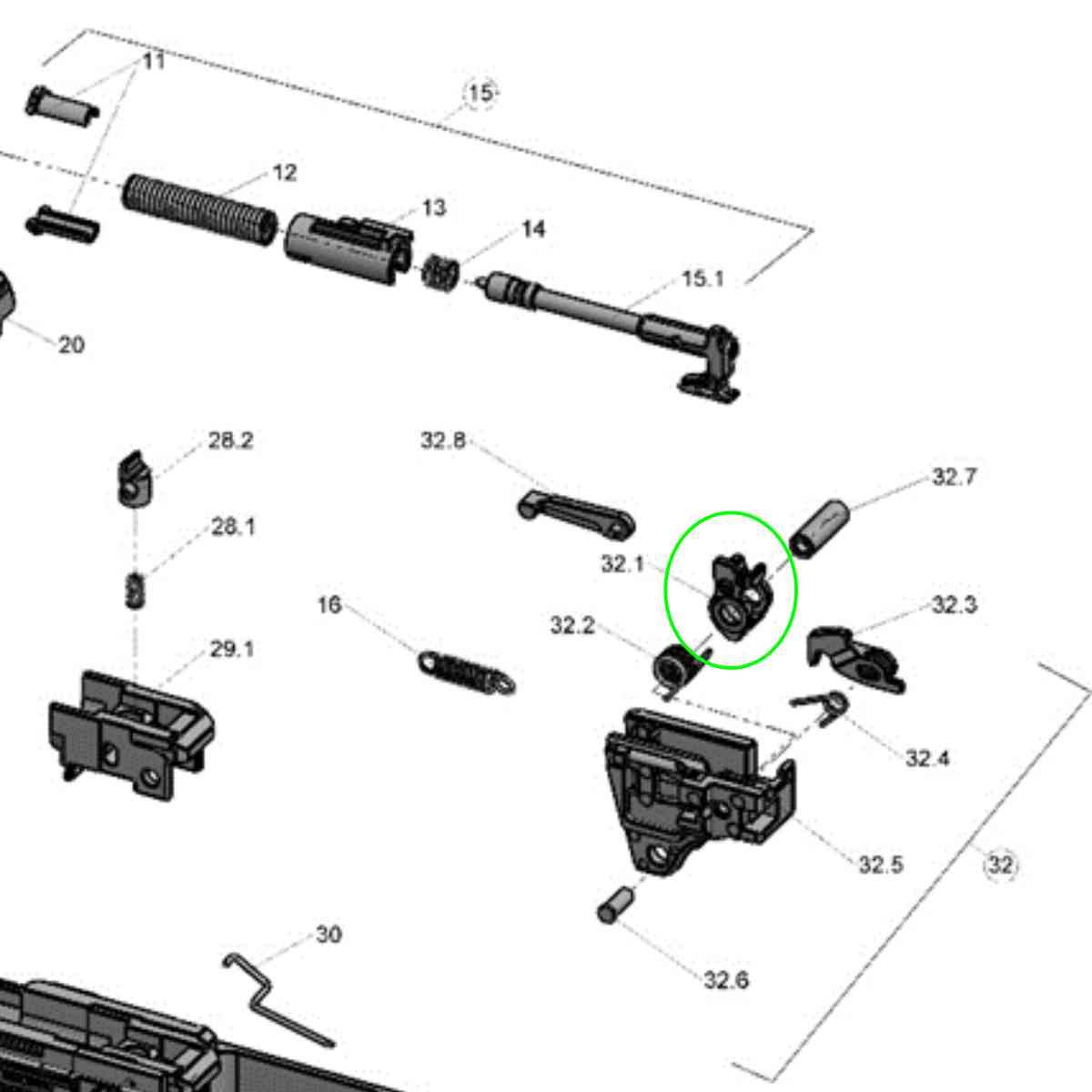 Jedná se o díl c. 32.1 (Single action lever) dle rozkresu Walther PDP.