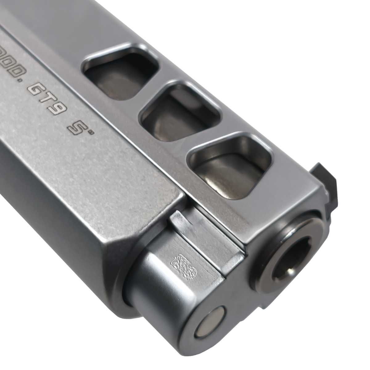 Samonabíjecí pistole Pardini GT9 pracuje na osvědčeném principu uzamčeného závěru do bloku výhozného okénka. Tento model vyniká špičkovým dílenským zpracováním, kde je lehký rám ze speciální vysokopevnostní slitiny spárován se závěrem vyrobeným ze speciální oceli. Povrchová úprava v matném saténu dodává zbrani elegantní a profesionální vzhled.