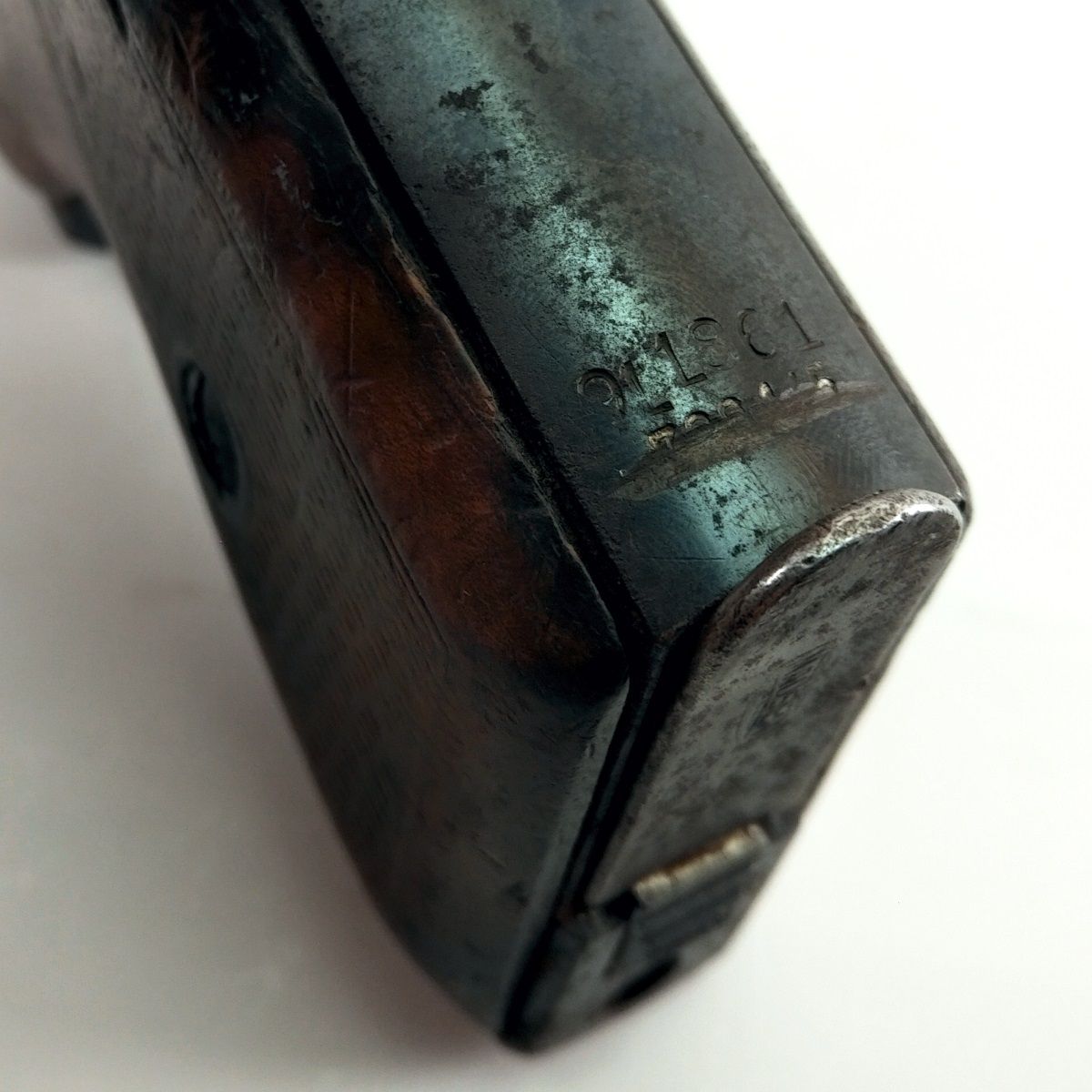 Nabízená pistole je ve stavu odpovídajícím válečné produkci a jejímu intenzivnímu používání. Povrch je bez škrábanců či vrypů, nicméně černění je místy setřeno. Dřevěné střenky nesou známky opotřebení, nejsou ale mechanicky poškozené. Zbraň je plně střelbyschopná, ale spoušť funguje pouze v jednočinném režimu (nelze spustit promáčknutím).