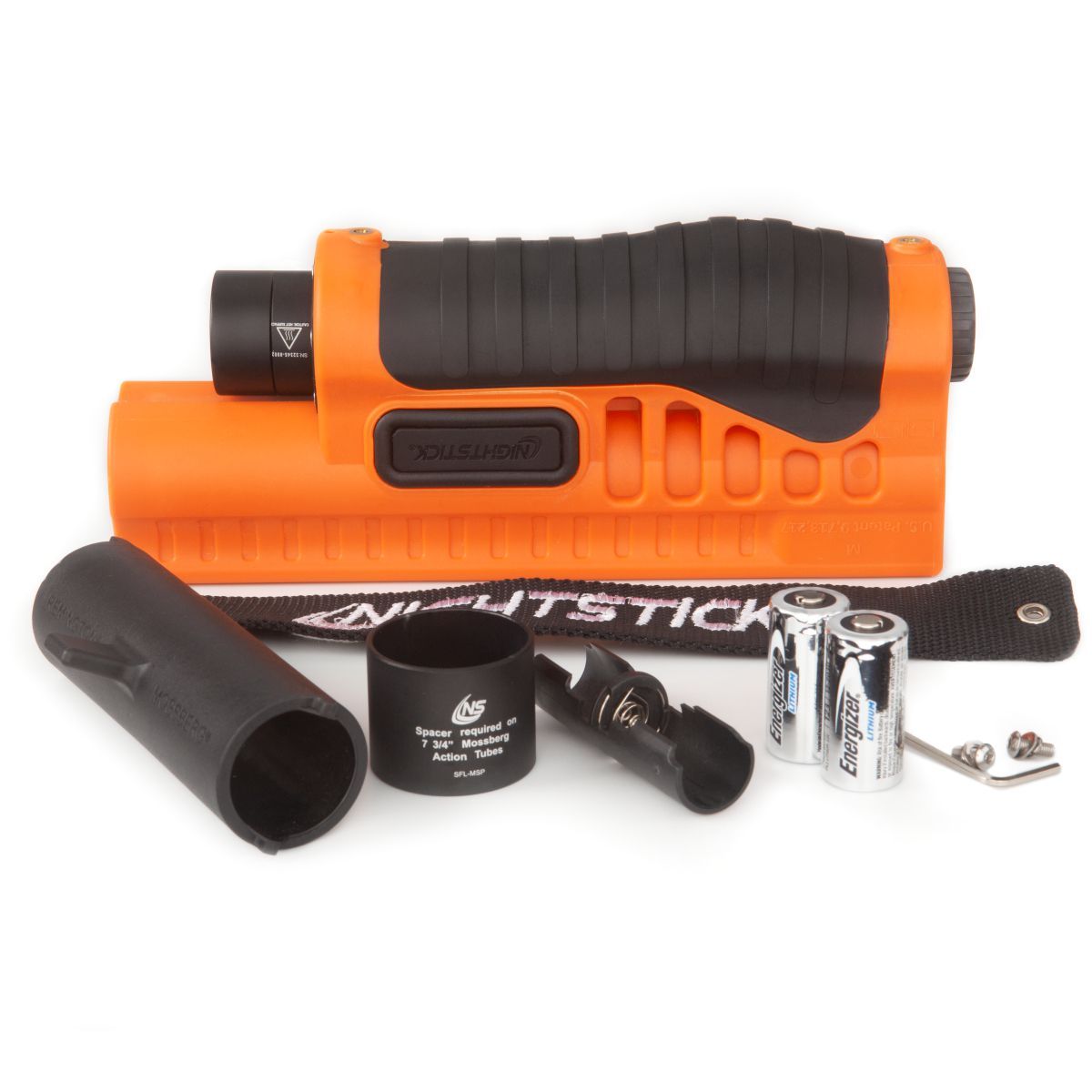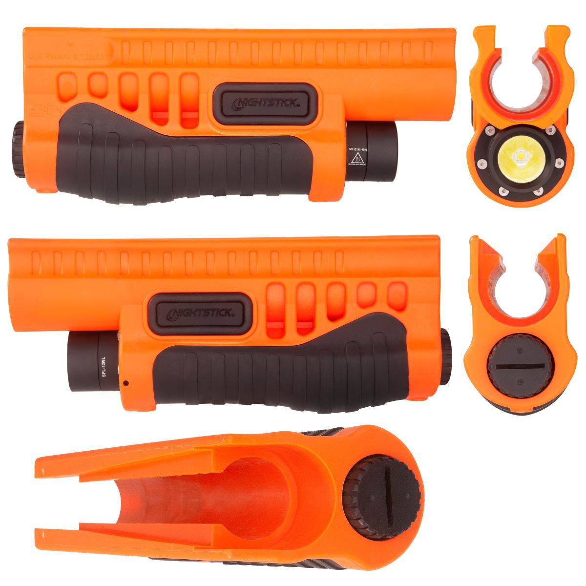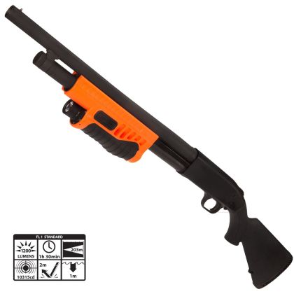 Nightstick SFL-12WL je taktická svítilna v predpažbí brokovnice v oranžové barve.