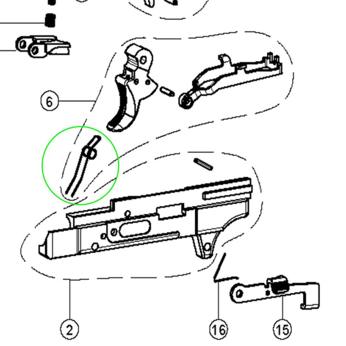 Jedná se o soucást dílu císlo 6 (trigger spring) dle rozkresu Walther P22Q.