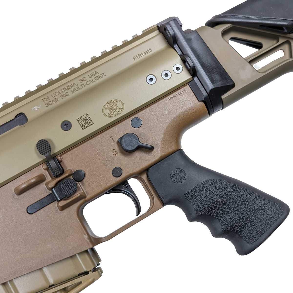 FN SCAR 20S zajištuje bezchybnou strelbu v jakékoli poloze i díky spouštovému mechnismu Two-Stage Match trigger (Geissele® “Super SCAR”).