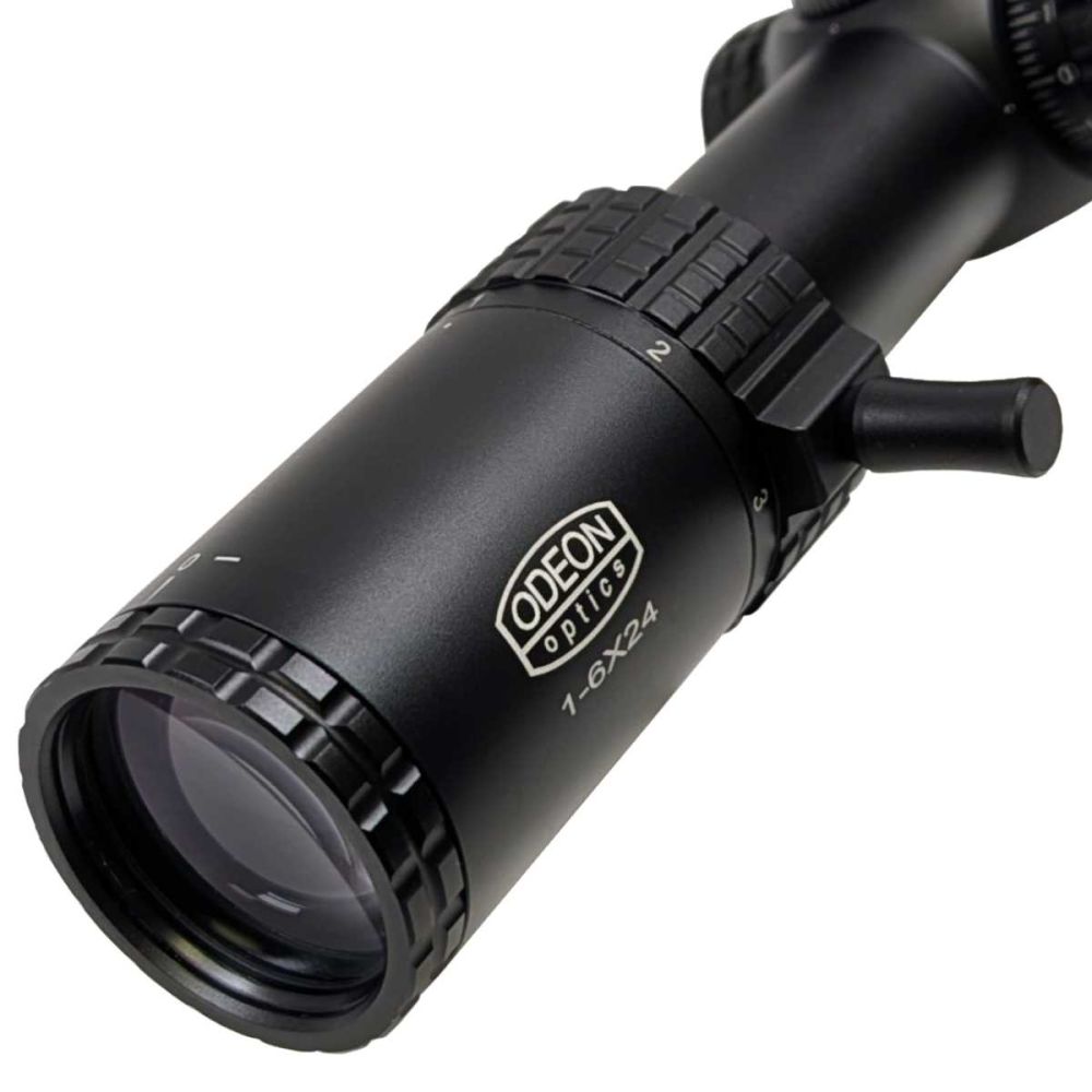 Kvalitní puškohled se zvětšením 1x – 6x a objektivem 24 mm od značky ODEON OPTICS série FORESTER.