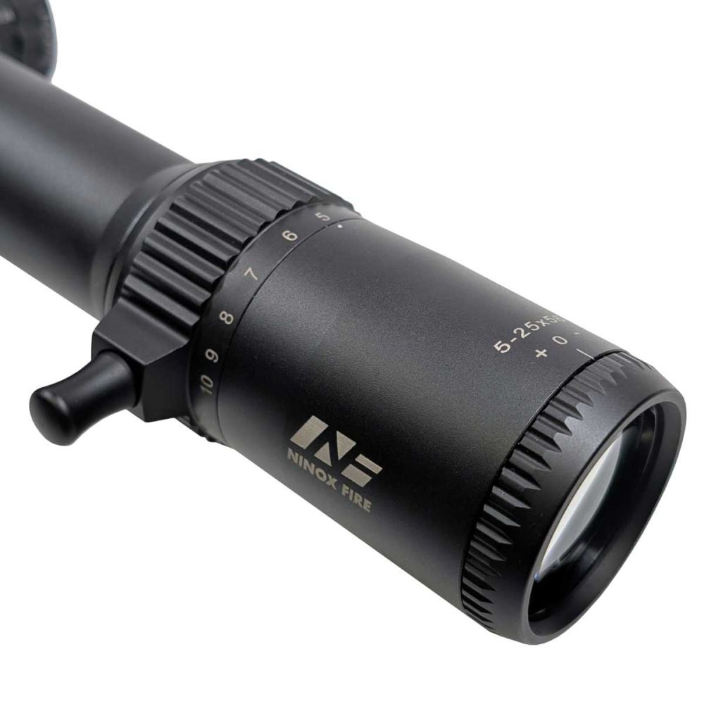 Vysoce kvalitní puškohled se zvětšením 5-25 x a objektivem 56 mm od značky Ninox Fire.