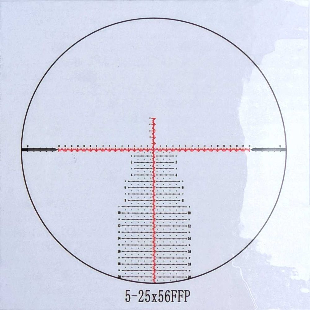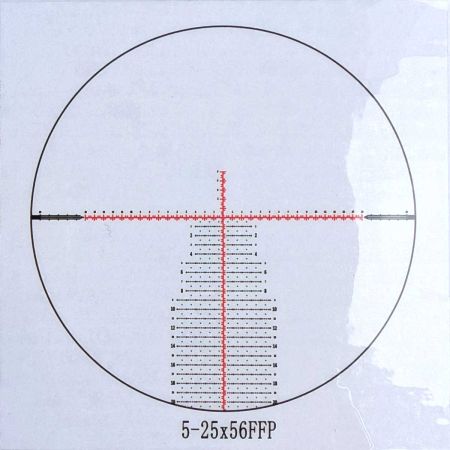 Puškohled 5-25x56 je v první ohniskové rovině a záměrná osnova se při přibližování zvětšuje.
