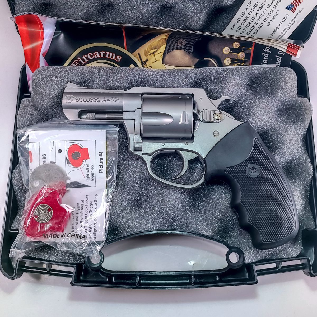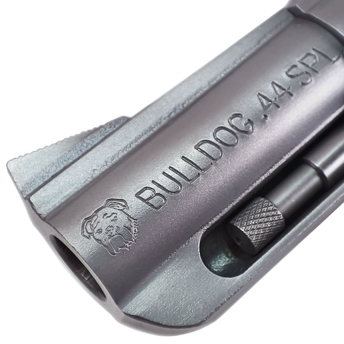 Charter Arms Bulldog je všestranný revolver standardní konstrukce, který se stal ikonou díky spojení kompaktních rozměrů a výkonné ráže .44 Special (44 S&W Special). Přestože se řadí mezi robustnější revolvery určené k osobní ochraně, jeho konstrukce je optimalizována pro každodenní skryté nošení. Rám i hlaveň jsou vyrobeny z kvalitní nerezové oceli se speciální povrchovou úpravou Glass Beaded, která dodává zbrani elegantní matně leštěný vzhled.