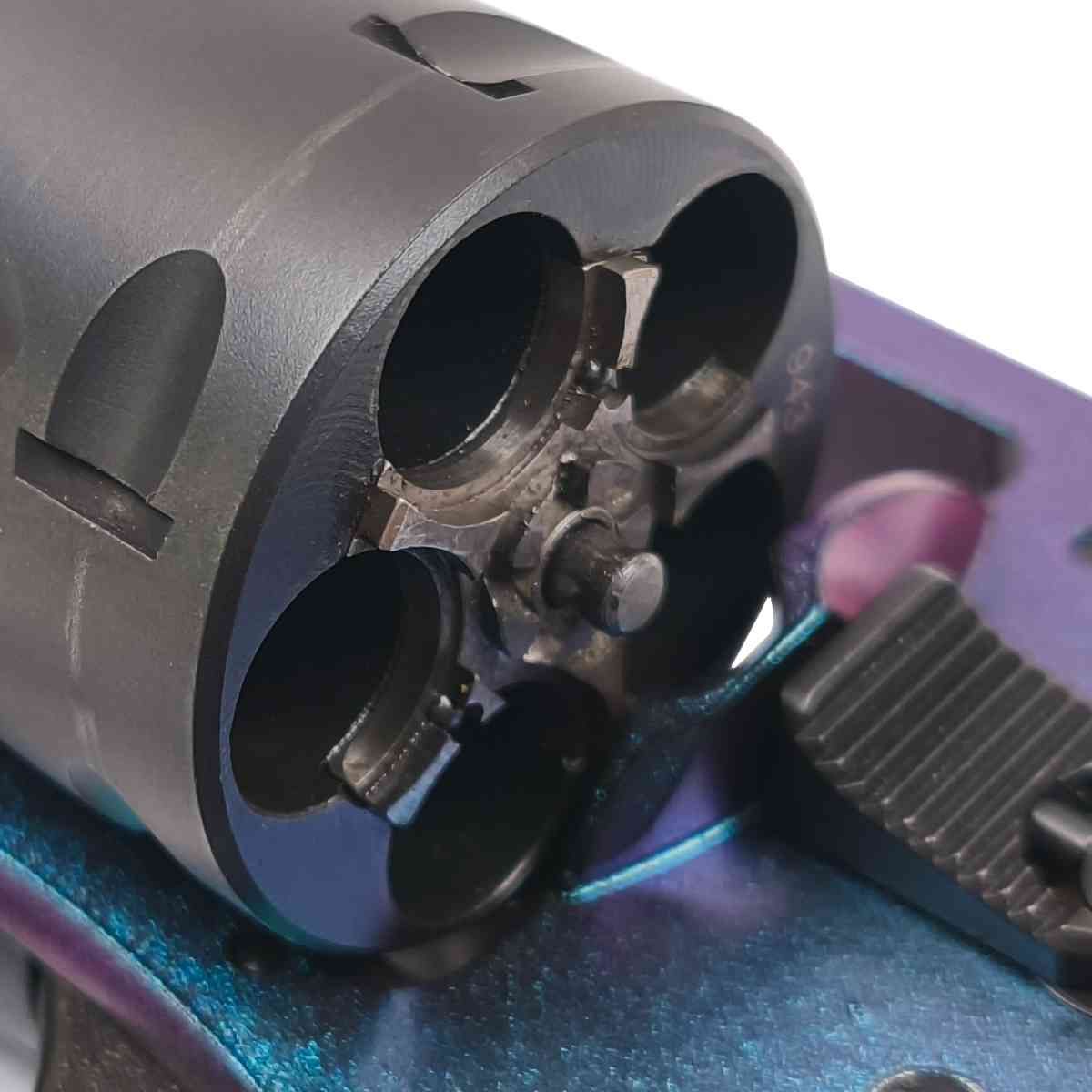 Rám je vyroben z vysoce kvalitního leteckého hliníku a povrchová úprava Cerakote v barve dávající revolveru príznacné jméno Chameleon je navíc preleštená.