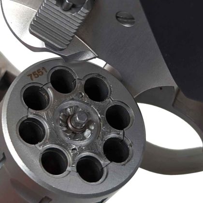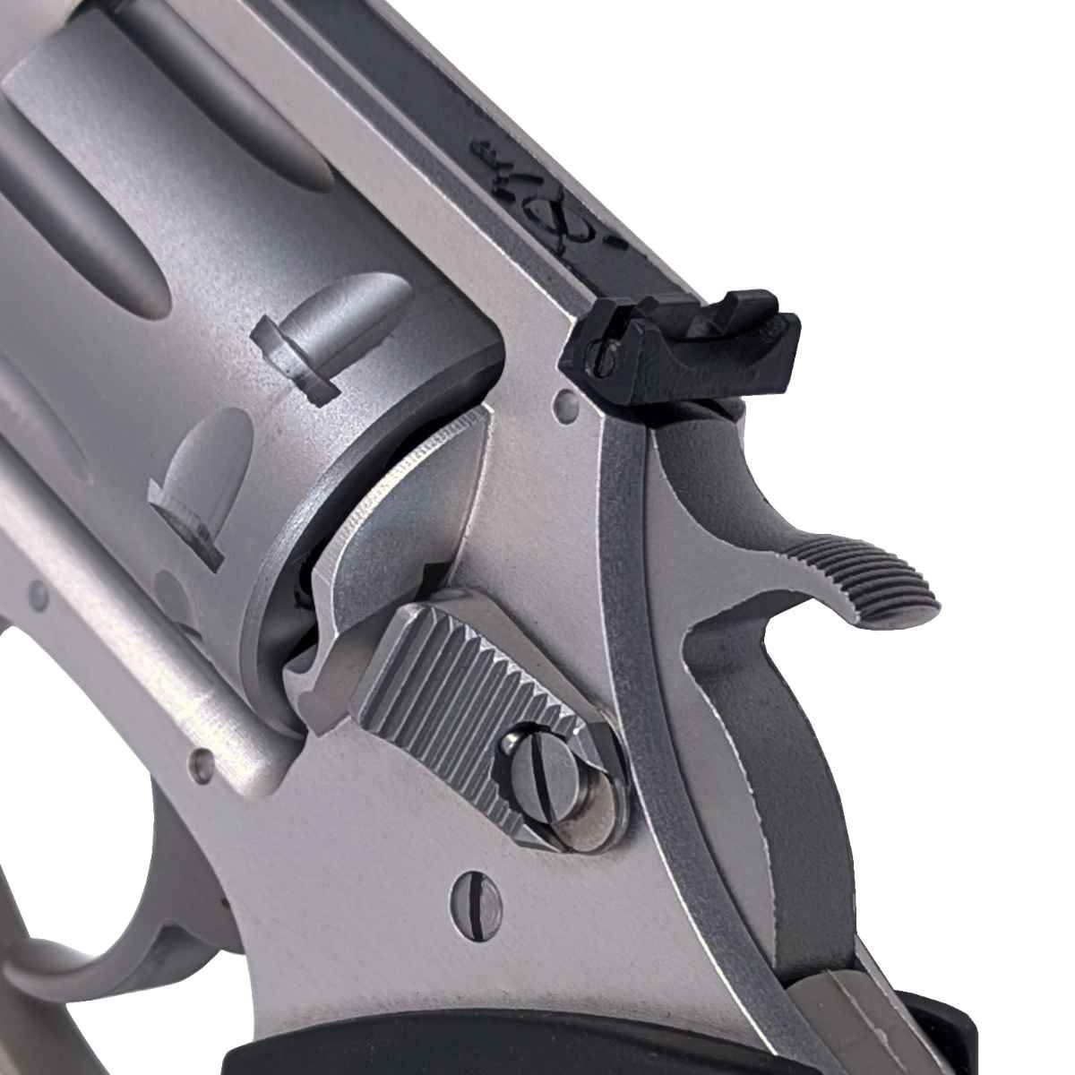Rám z vysoce kvaliního leteckého hliníku je osazen nábojovým válcem o kapacite 8 náboju.