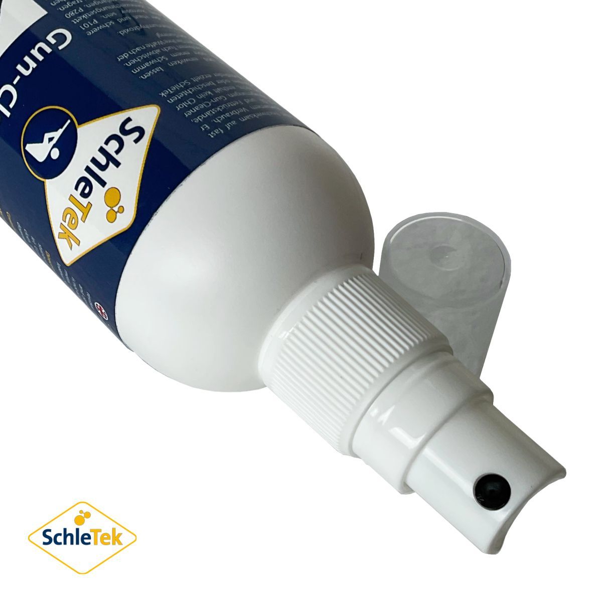 SchleTek Gun Cleaner 150 ml (cisticí prípravek na zbrane) cistí a odmaštuje prakticky jakýkoli materiál nebo znecištený povrch, jako je kov, drevo, plast, guma, neopren, kuže, lakované a utesnené povrchy.