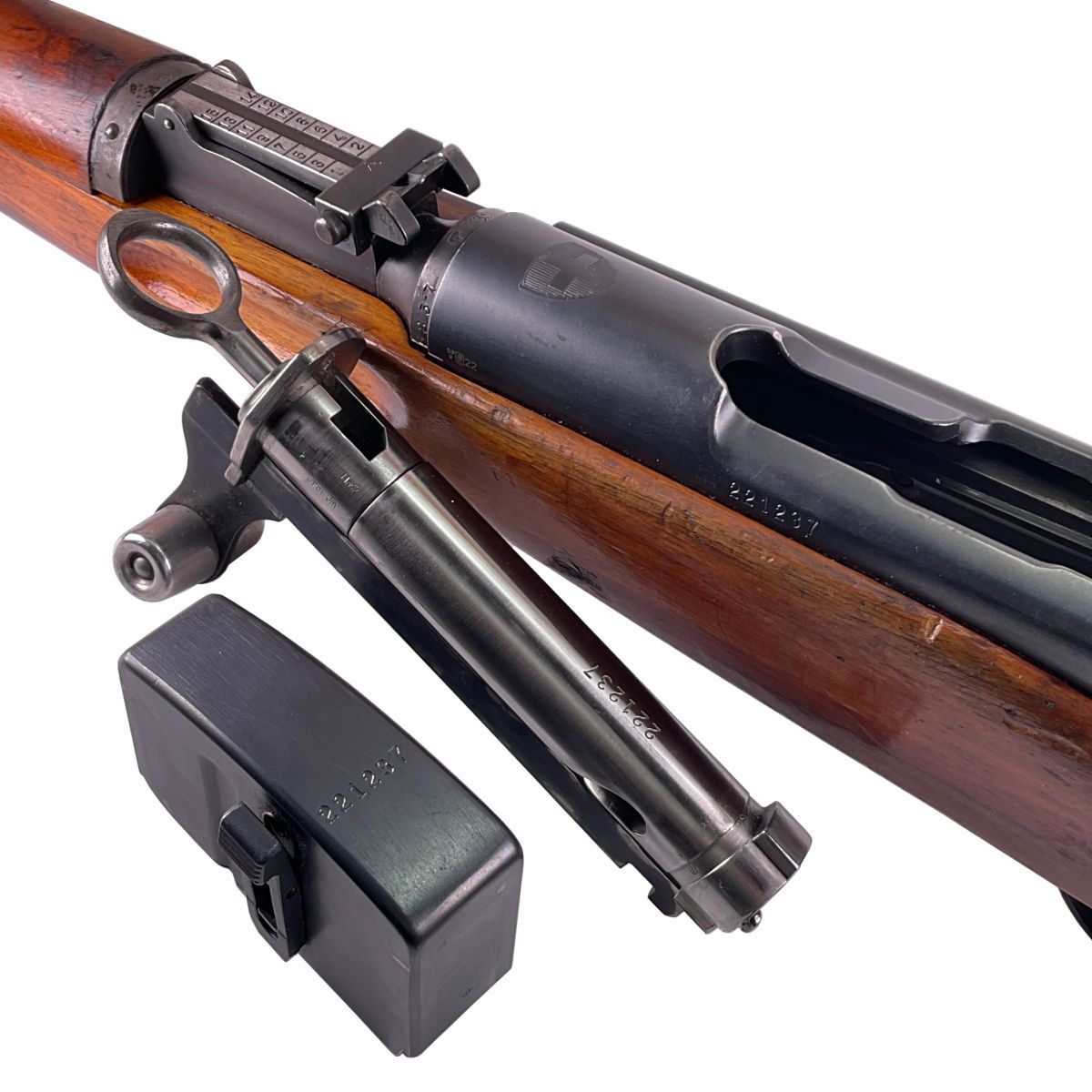 Obsah balení: opakovací karabina Schmidt-Rubin K31, vyjímatelný zásobník.