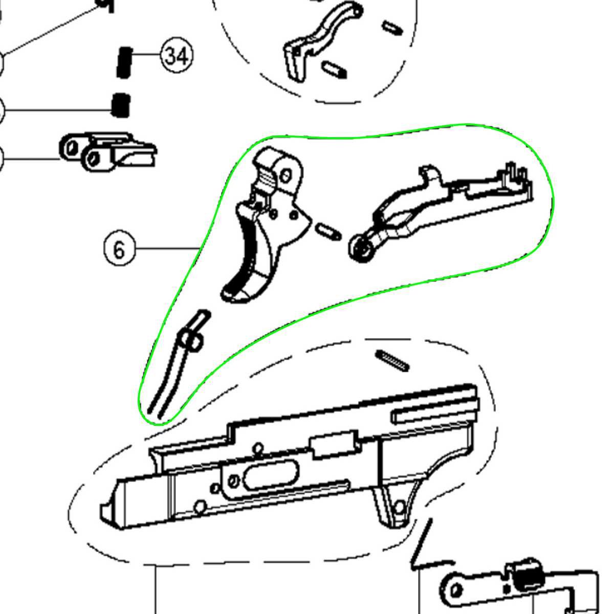 Jedná se o díl císlo 6 (trigger assembly) dle rozkresu Walther P22Q.