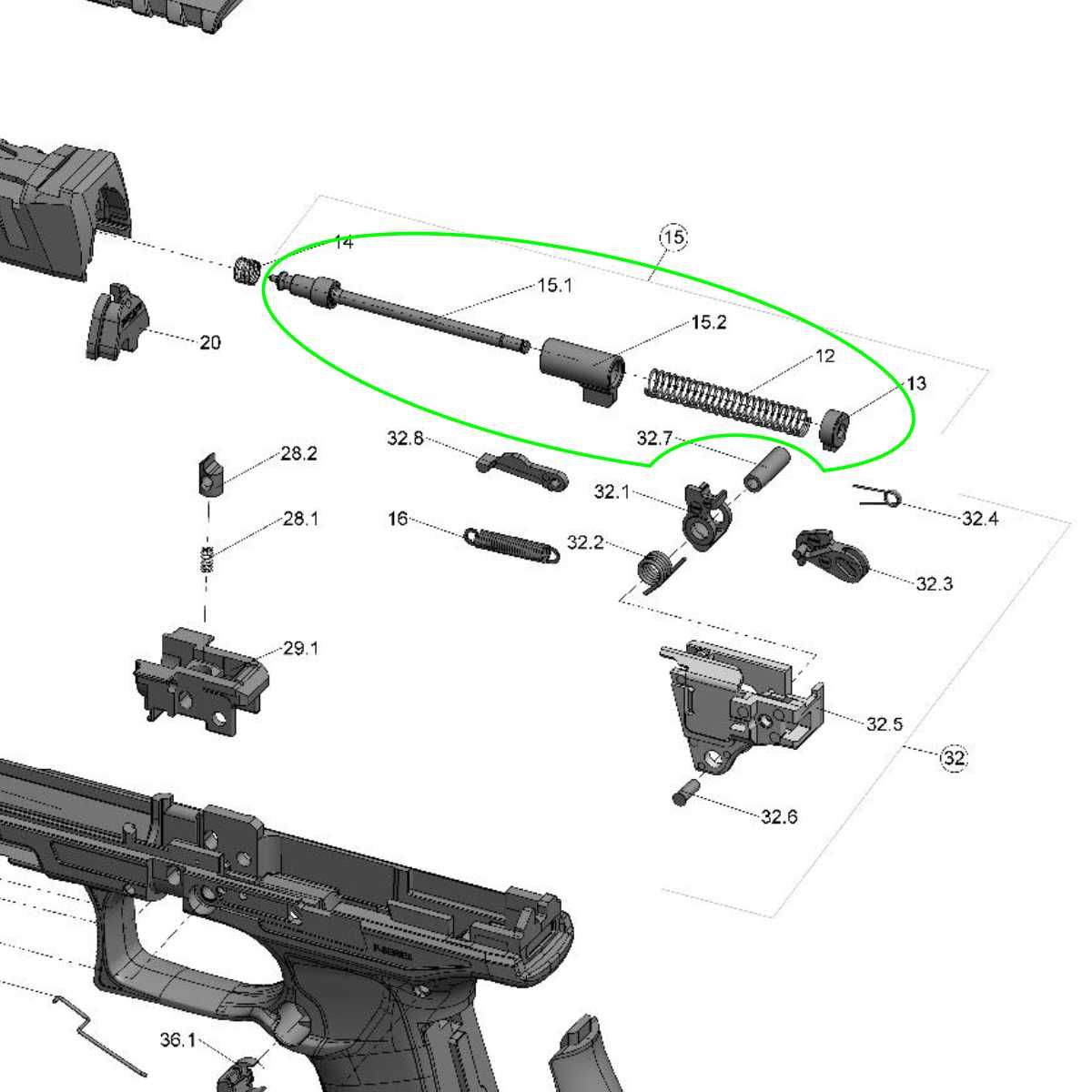 Jedná se o díl c. 15 (Striker assembly) dle rozkresu Walther PDP F-Series.