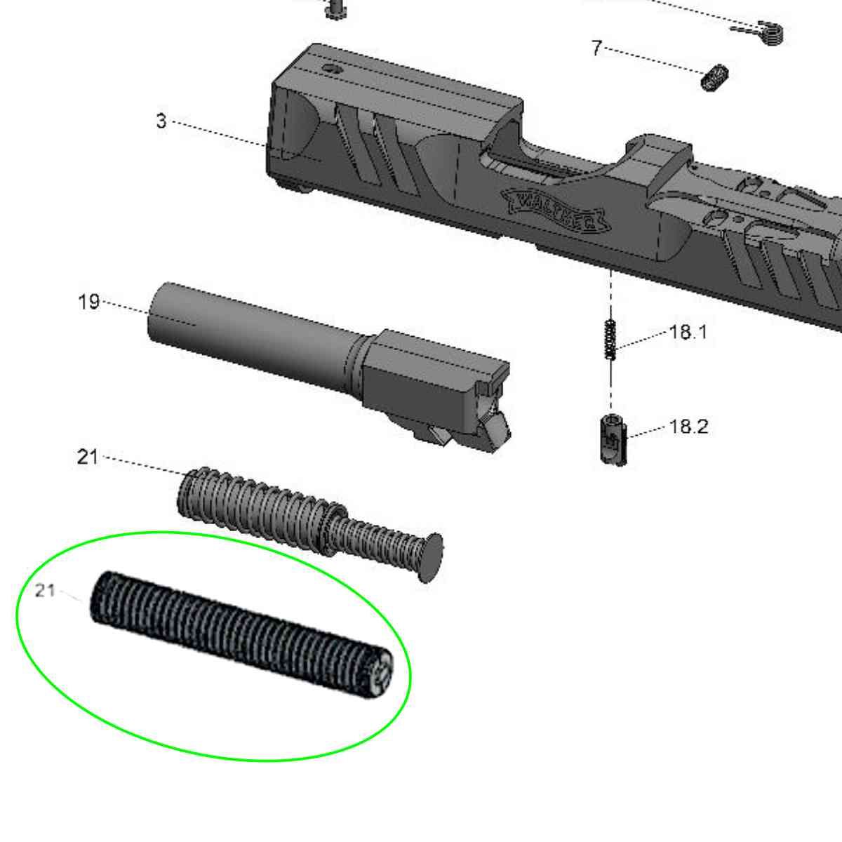 Originální vratná pružina pro pistole Walther PDP F- Series s délkou hlavne 4".