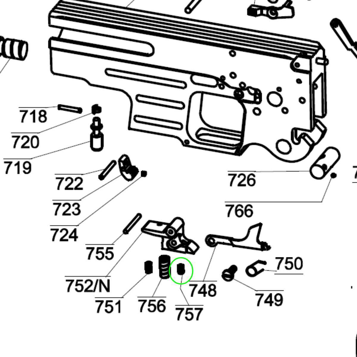 Jedná se o díl c. 757 (TRIGGER STOP SCREW) dle rozkresu Pardini SP a TR20.