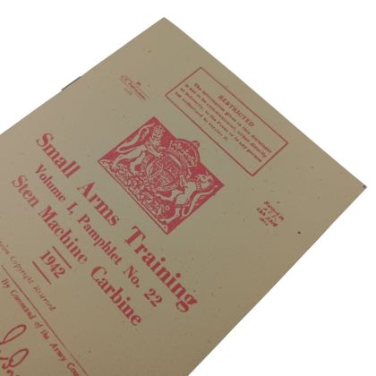 Britský válecný manuál z roku 1942 k obsluze samopalu STEN Mk.I-Mk.III. Príloha dokonce obsahuje návod na pripevnení "taktické" svítilny (spotlight projector) na hlaven zbrane!