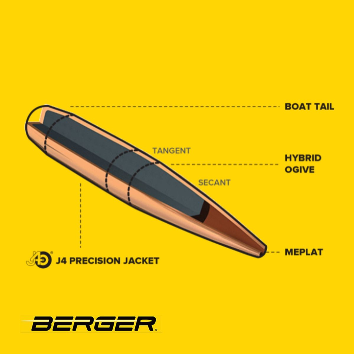 Dokonalá konstrukce plášte J4, splnuje nárocné výrobní tolerance strel Berger. Balistictí konstruktéri spolecnosti Berger využili své mimorádné odborné znalosti a zkombinovali vhodné tvary pro optimální presnost a výkon.