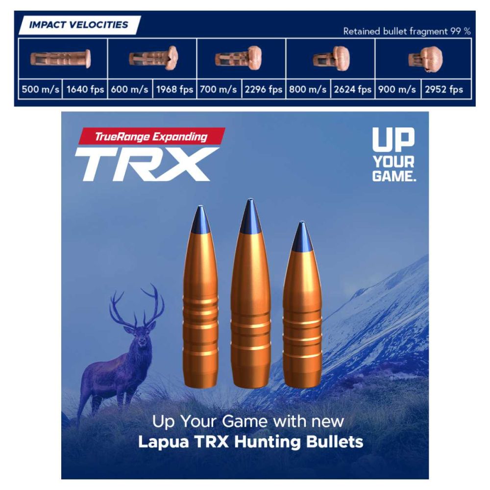 S radostí Vám představujeme bezolovnatou expanzivní loveckou střelu TRX s označením N584 ráže .30 o hmotnosti 10,7 g / 165 grainů od společnosti Lapua!