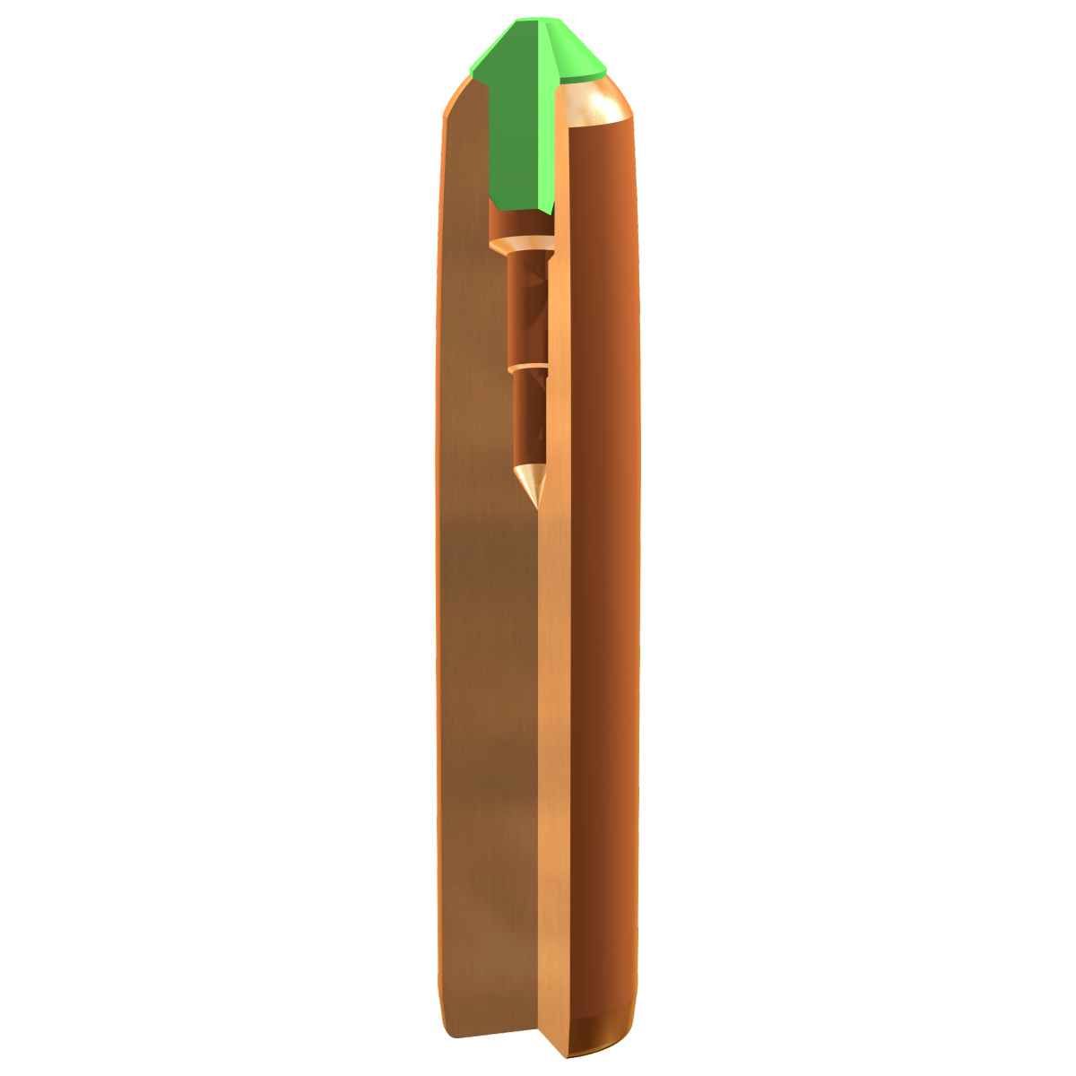 Zajištuje maximální rázový úcinek a dokonale funguje v rámci terminálních rychlostí od 490 m/s po 1000 m/s (1607 fps až 3280 fps).